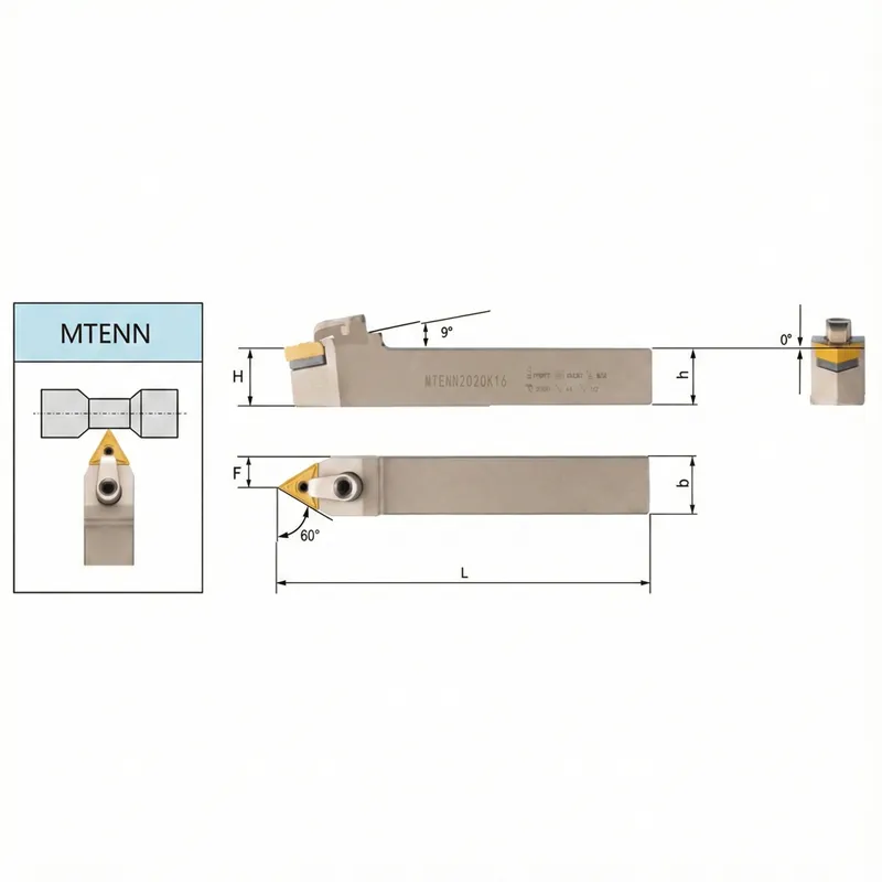 Overview The MTENN series is a specialized Neutral External Turning Holder designed for versatility and precision. Unlike standard right or left-hand tools, the MTENN features a symmetric design with a 60° entering angle. This geometry makes it an excellent choice for CNC profiling, copy turning, and operations requiring bidirectional cutting capabilities or specific clearance angles.