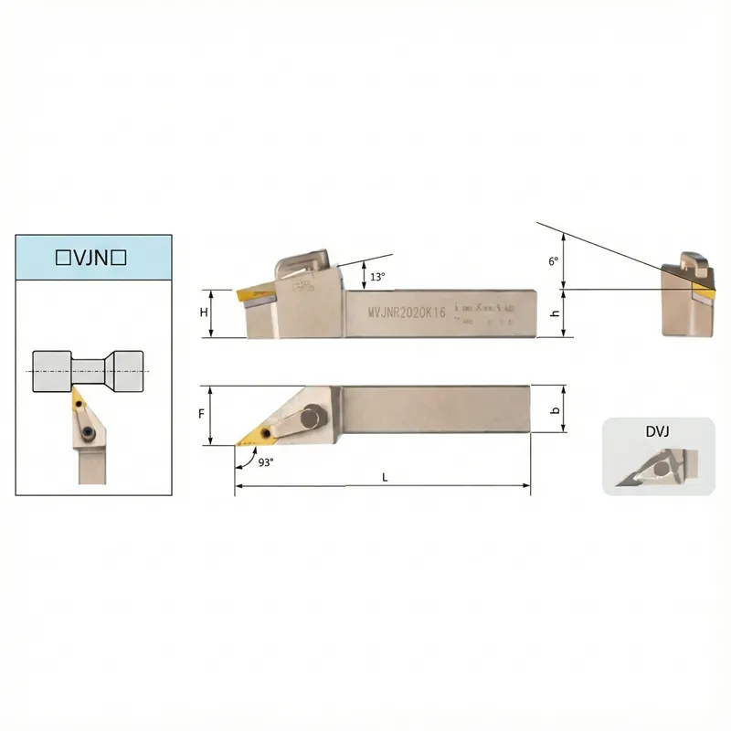 A: MVJNRは、主にプロファイリング(倣い旋削)と仕上げ加工に使用されます。35°のチップ形状により、複雑な形状をトレースし、CNMG(80°)やTNMG(60°)の工具では入り込めないような狭いコーナーにも対応します。.