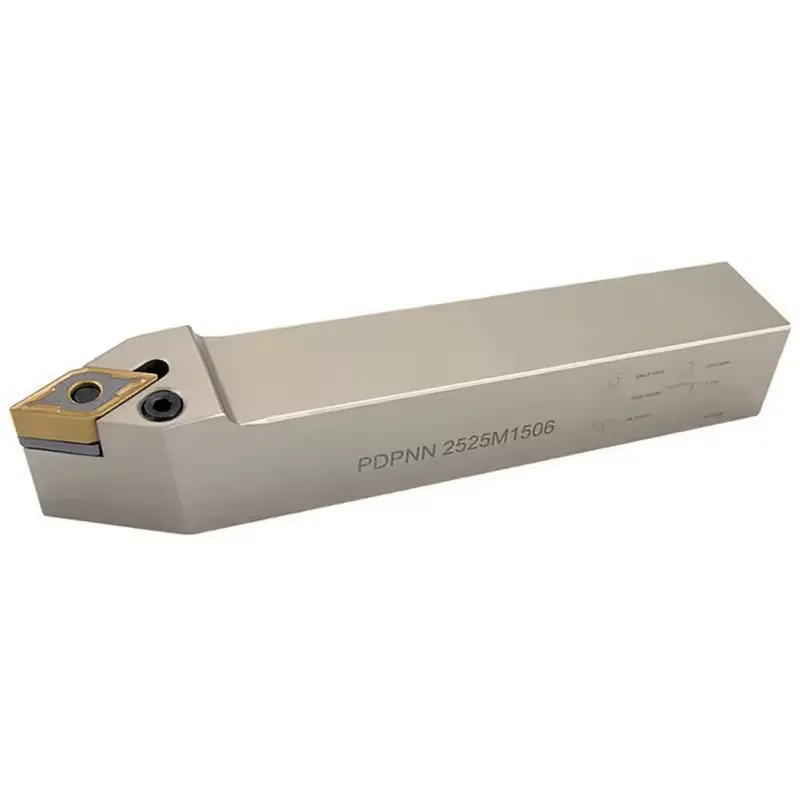 The PDPNN series is a robust External Turning Tool Holder engineered for operations requiring a neutral approach angle. Its unique 62.5° entering angle allows for efficient facing, chamfering, and profiling, making it a valuable addition to any CNC lathe toolkit.