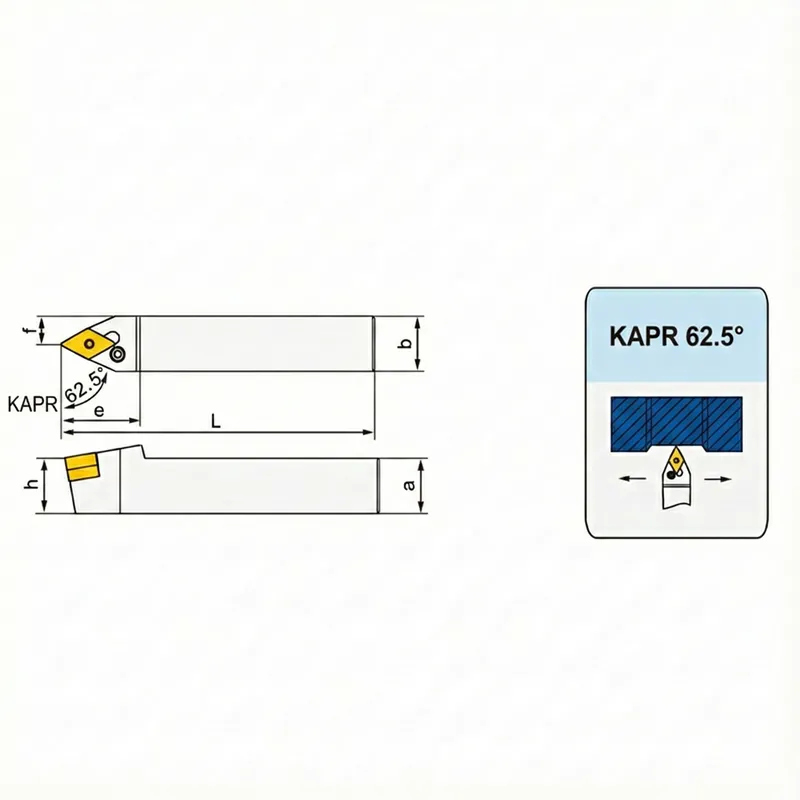 Precision Geometry: This tool is defined as a Lever type holder with 62.5° approach angle for negative 55° Rhombic insert, offering a perfect balance between cutting force direction and accessibility.
